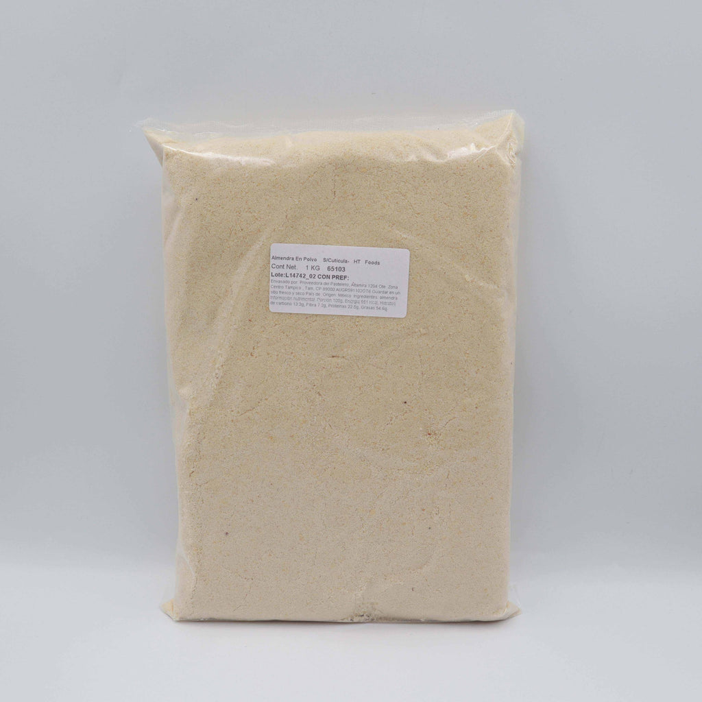 Almendra en Polvo o también conocida como Harina de Almendra 100% natural que añade un sabor y una textura maravillosa a productos de panadería, repostería para preparar mantequilla o crema de mantequilla para untar en panes o pasteles y también ideal para capear pollo o pescado y leche. También es recomendado para la elaboración de varios tipos de galletas, pasteles, Macarrones, obleas, etc.