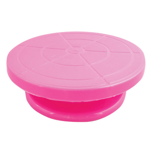Base para pastel Giratoria de Plastico en color Rosa Intenso, ideal para decorar pasteles. Cuenta con Dimensiones de 7 cm de Alto x 28 cm de Diámetro.