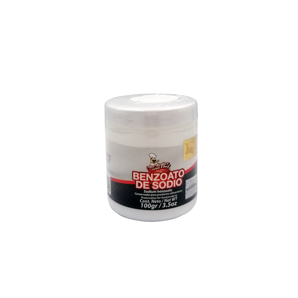 El Benzoato de Sodio es una sal sódica de ácido benzoico y es uno de los inhibidores más efectivos para la conserva de alimentos y bebidas. Puede ser color blanco, es soluble en agua y ligeramente en alcohol. Disponible en presentación de 100g.