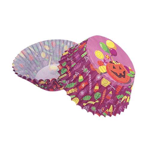 Modelo: Morado con Calabaza, Globos y Caramelos.Presentación: 100 piezas.Diámetro: 5 cm.