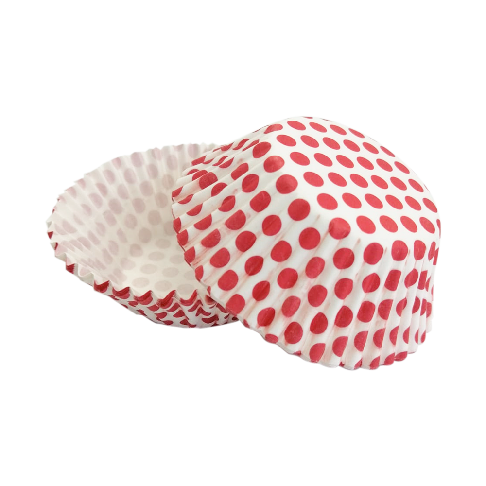 Modelo: Blanco con Lunares Medianos Rojo.Presentación: 100 piezas.Diámetro: 5 cm.
