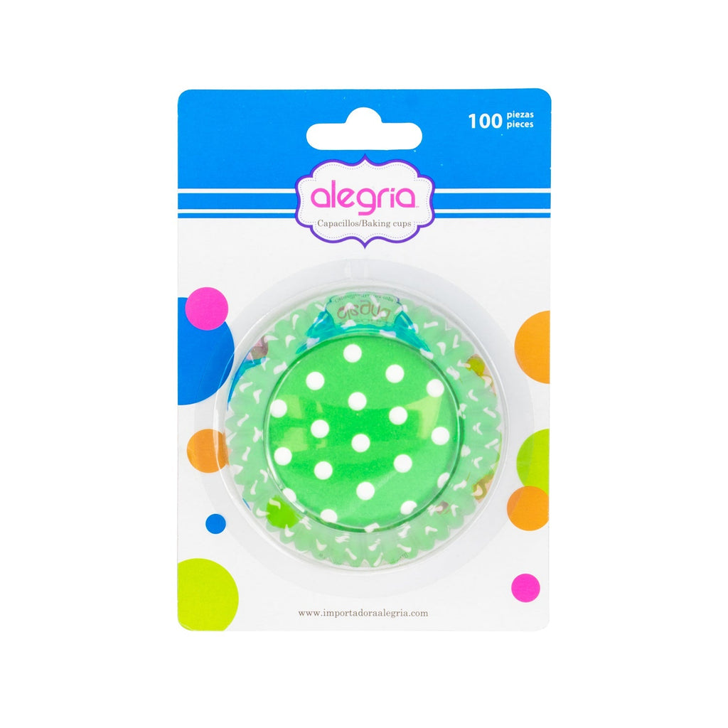 Modelo: Verde con Lunares Blancos.Presentación: 100 piezas.Diámetro: 5 cm.