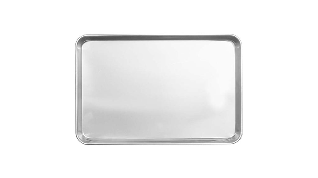 Charola Rectangular de 30x45cm, hecho de Aluminio con Calibre 20. Es una charola muy versátil de tamaño Chico que funciona para preparar diversos platillos dulces o salados en el horno.