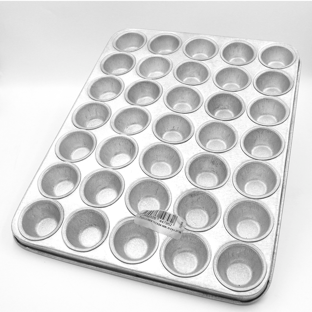 Placa para Mini Mantecada de 35 Cavidades de 27x36cm, hecho de ZintroAlum. Prepara tus postres como un profesional con la placa para mini mantecadas. Esta cuenta con 35 espacios, para que puedas hornear la mayor cantidad en el menor tiempo posible.