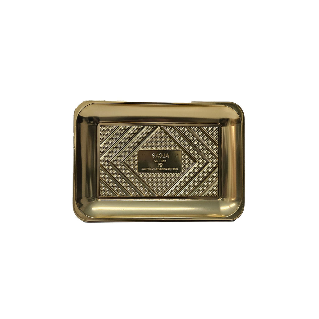 CHAROLA PLASTICO DORADA RECTANGULAR 19 X 13 CM ALEGRIA