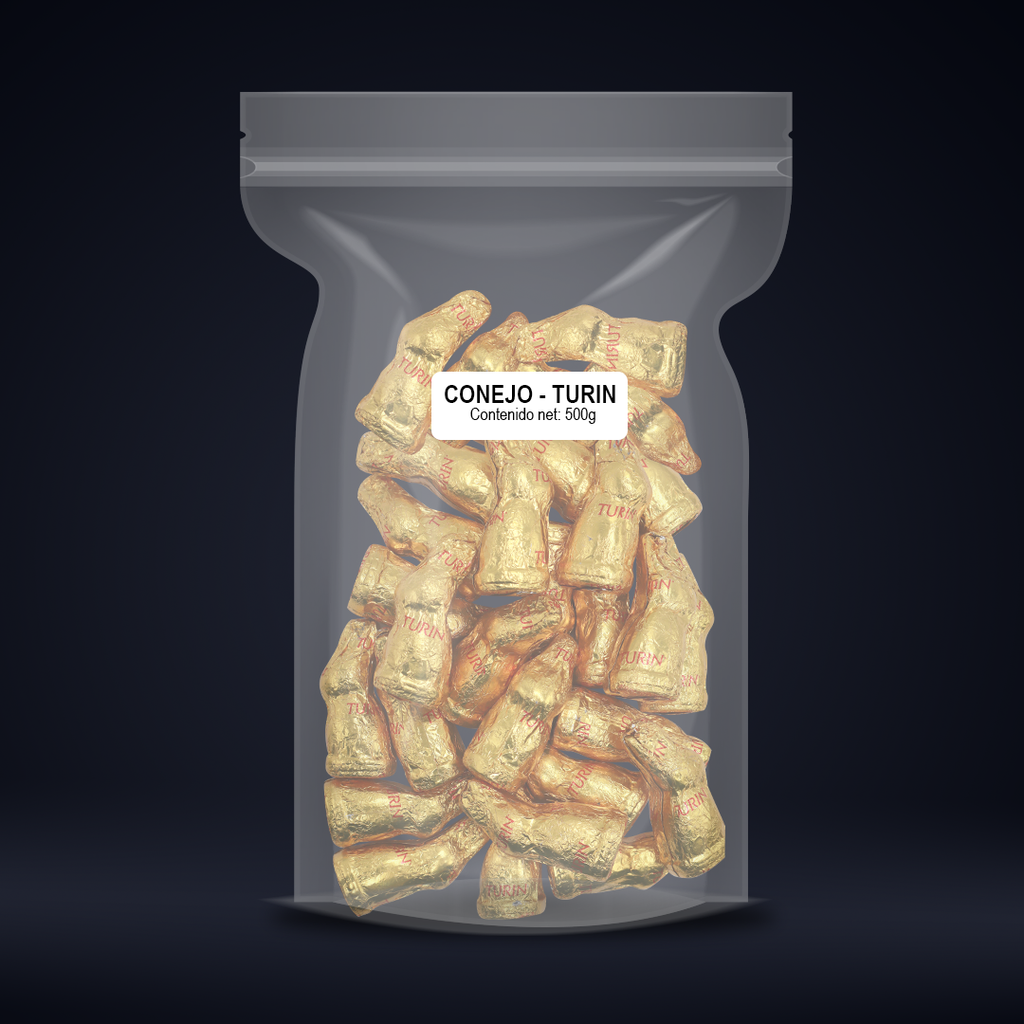 Turin tiene para ti el postre dulce Conejos que tanto te gustan, un suculento sabor de chocolate con leche disponible en una presentación de 500gr.