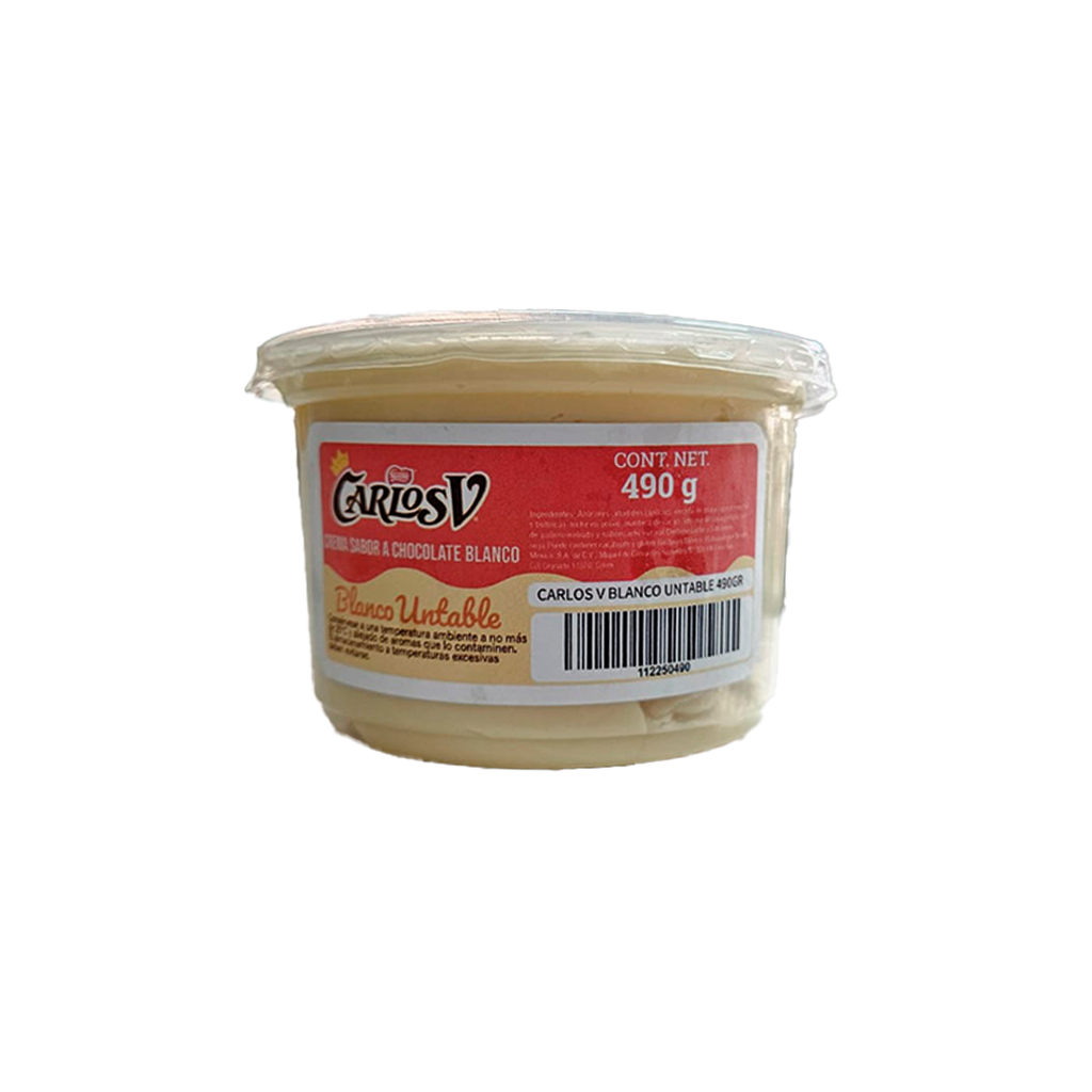 Te presentamos el Carlos V Blanco - Untable y Horneable. Disfruta el gran sabor del rey de los chocolates ahora también en sabor chocolate blanco. Lo puedes usar como relleno, cobertura, decoración y más. Incluso usando colores liposolubles puedes pintarlo. Nueva presentación 490 g.
