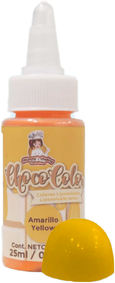 Colorante para Chocolate en Manteca de Cacao disponible en presentación de 25ml en color Amarillo. Son Colorantes Liposolubles ideales para utilizar en chocolate real, permitiendo un color vivo y brillante en el chocolate.