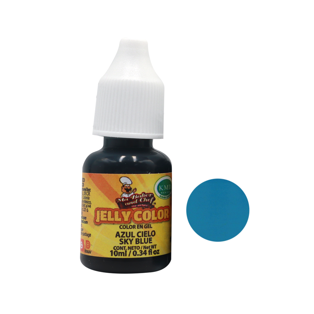 El Jelly Color de Ma Baker and Chef es un Color en Gel, es ideal para pintar Crema Batida, Fondant, Masa, Merengue, Royal Icing, etc. Disponible en presentación de 10ml en color Azul Cielo.