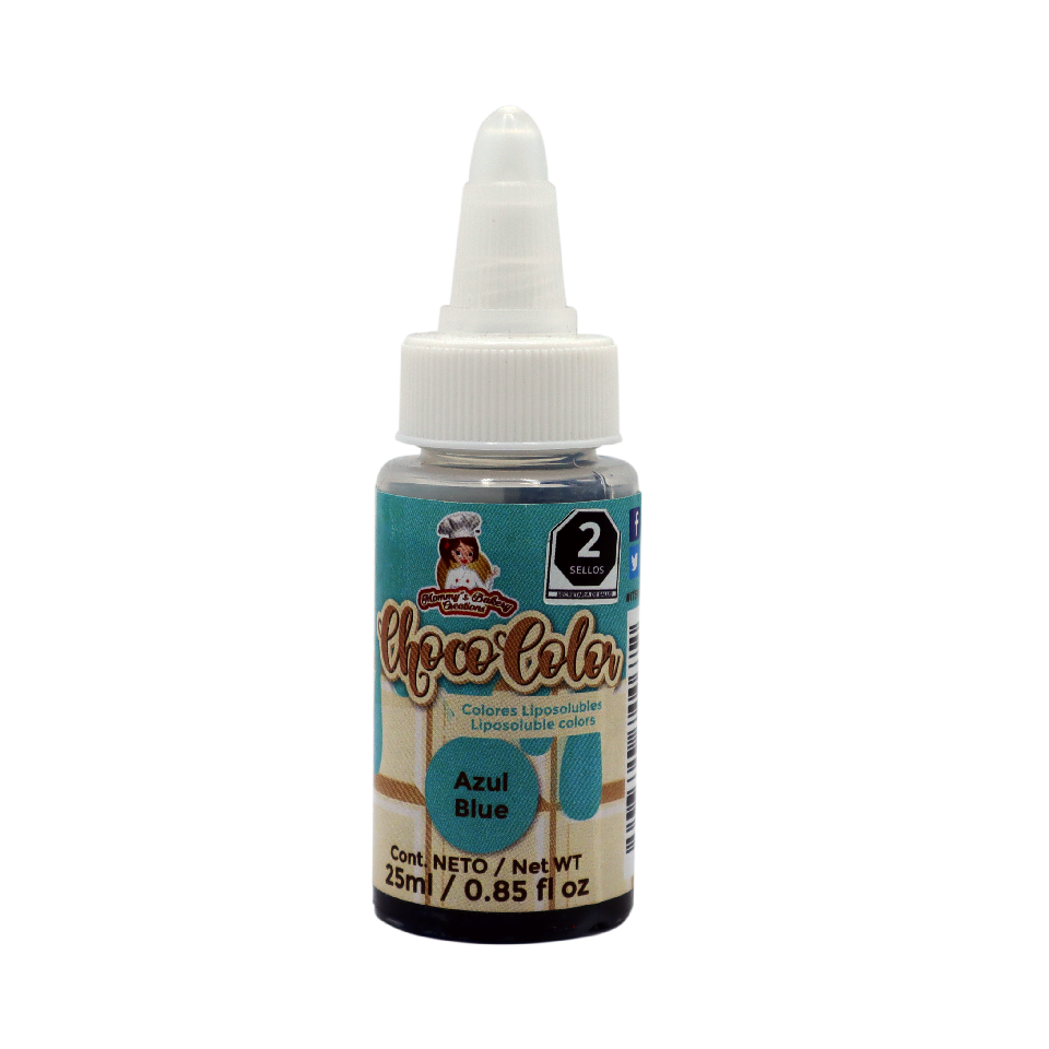 Colorante para Chocolate en Manteca de Cacao disponible en presentación de 25ml en color Azul. Son Colorantes Liposolubles ideales para utilizar en chocolate real, permitiendo un color vivo y brillante en el chocolate.