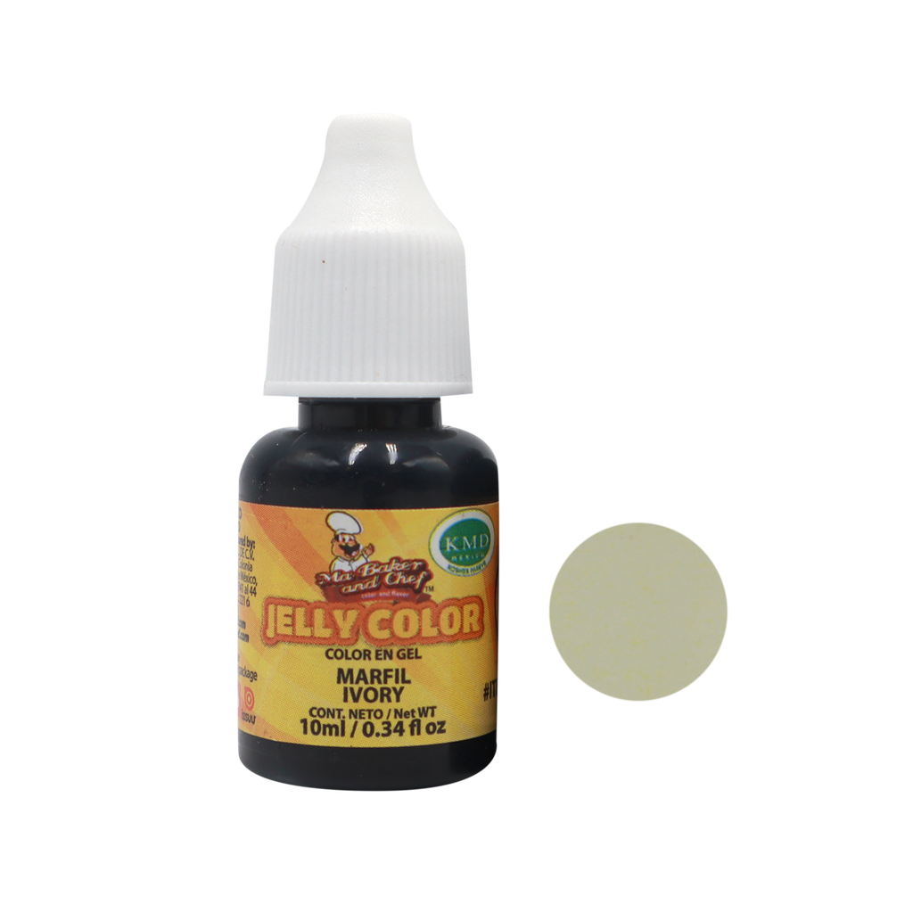 El Jelly Color de Ma Baker and Chef es un Color en Gel, es ideal para pintar Crema Batida, Fondant, Masa, Merengue, Royal Icing, etc. Disponible en presentación de 10ml en color Marfil.