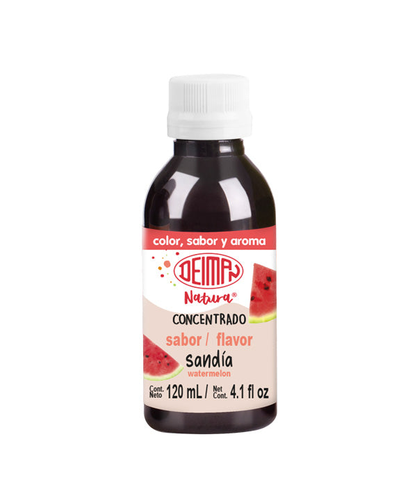 Esencia líquida de sabor Sandia. Ideal para Helados, Paletas, Bolis, etc. Imparte sabor y aroma, no imparte color.