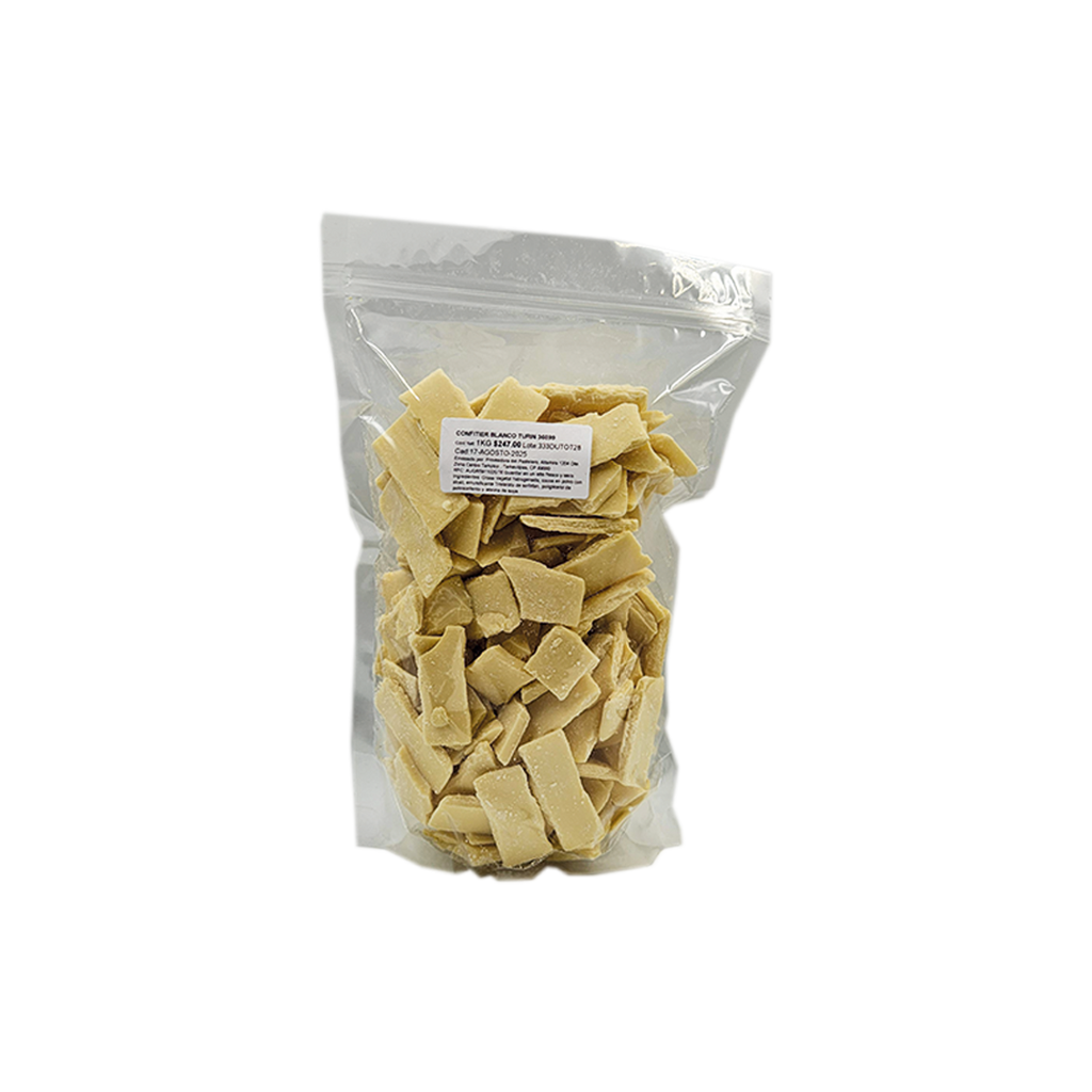 Chocolate Blanco en trozos prepara tu pastel favorito de chocolate y cúbrelo con un delicioso ganache. Su textura es perfecta para postres, puedes derretirlo o usarlo como relleno.