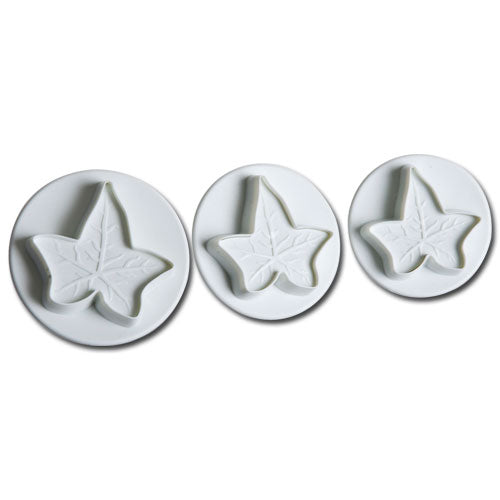 Set de 3 cortadores con eyector en forma de hoja maple. Ideal para galletas, fondant o pasta goma