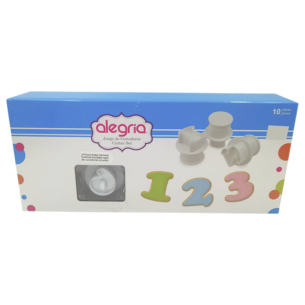 CORTADOR EYECTOR PLASTICO NUMEROS 10 PIEZAS ALEGRIA