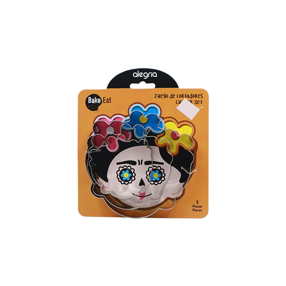 Crea formas divertidas con este juego de Cortadores con Diseño de Catrina con 3 Flores. Deleite y sorprenda a todos sus invitados con unas deliciosas galletas. Ideal para Fondant y Pasta de Goma.