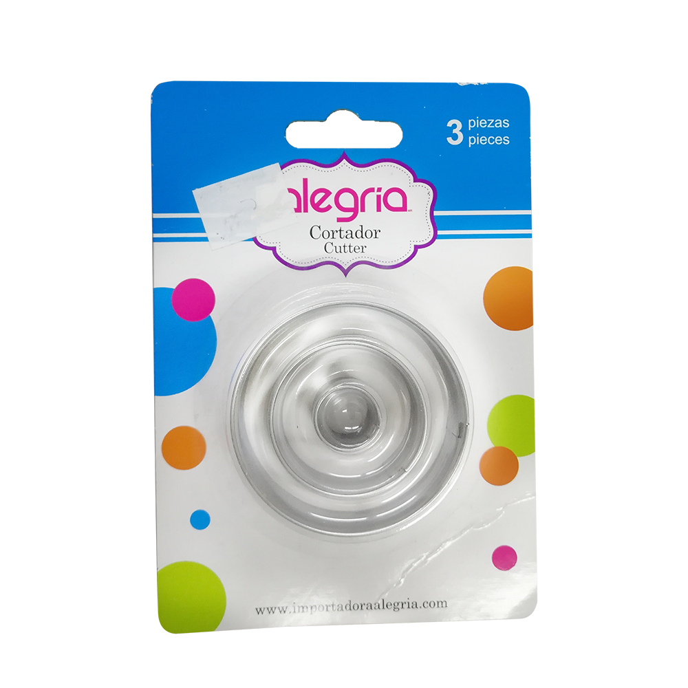 Set de 3 cortadores redondos en distintas medidas, con diseño liso. Ideal para galletas, fondant o pasta de goma.