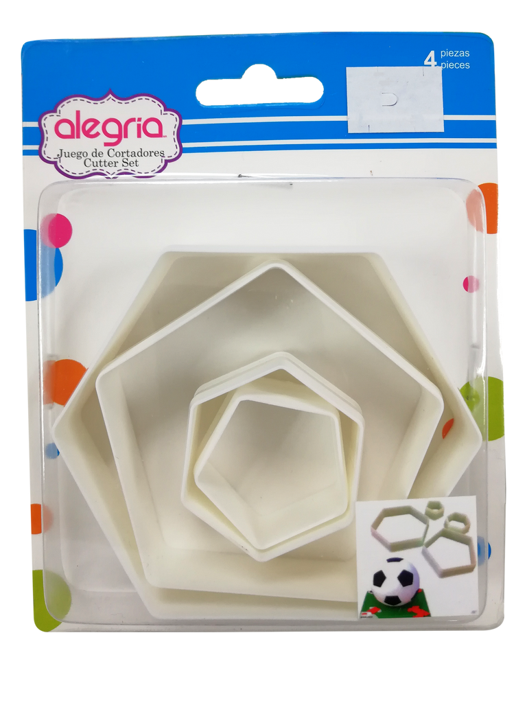 Set de cuatros cortadores con diseños de hexagonos. Ideal para galletas, fondant o pasta goma.