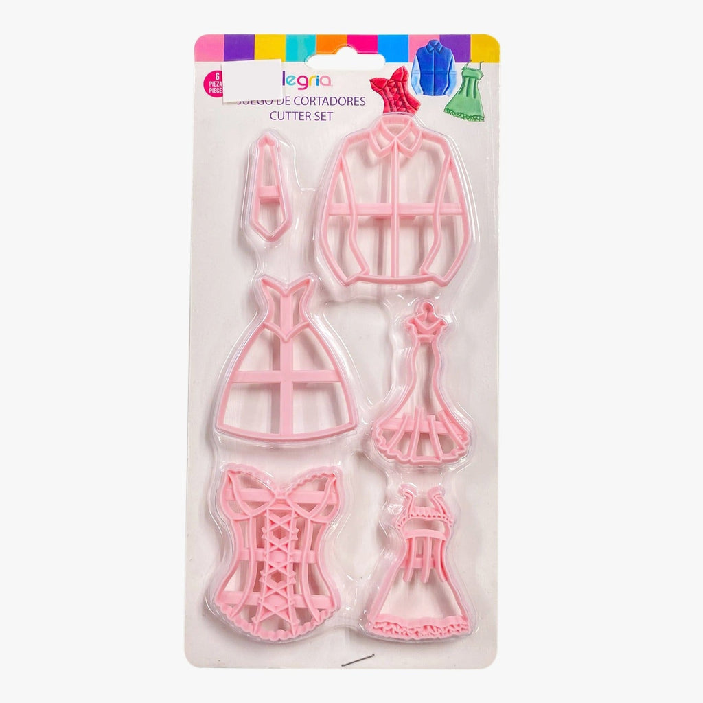 Juego de Cortador y Marcador de Plástico con Diseño de Prendas de Vestir. Deleite y sorprenda a todos sus invitados con unas deliciosas galletas. Ideal para Fondant y Pasta de Goma.
