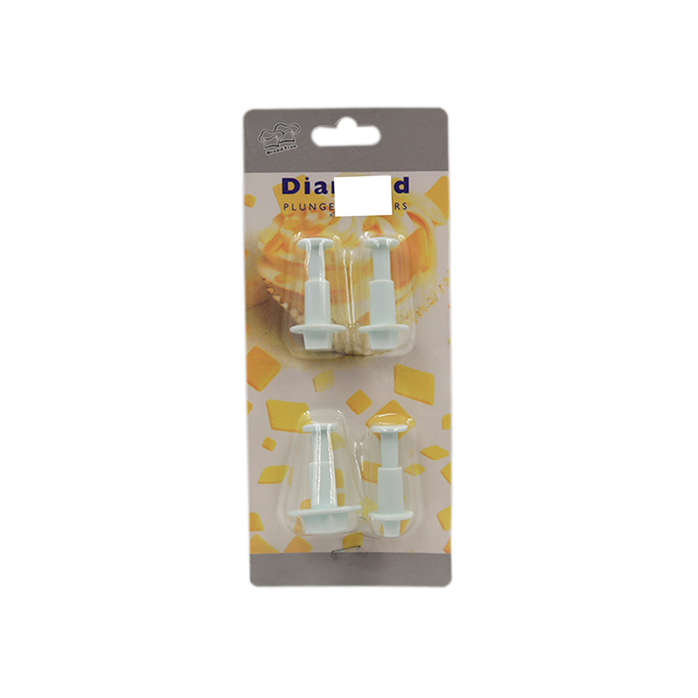 Set de cortadores de plástico para elaborar rombos de distintos tamaños.