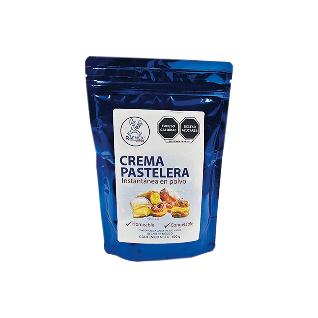 La Crema Pastelera de Rafmex es una preparación en polvo que, al disolverse en agua o leche, está lista para usarse. Su consistencia es cremosa y suave, de color crema y de sabor dulce con un ligero toque de vainilla.