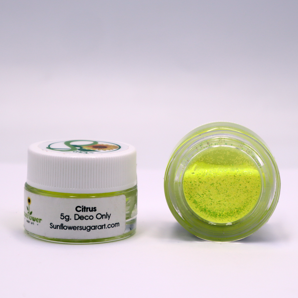 La Brillantina Sunflower es un espolvoreador de decoración no toxico, brillante, muy fino y brillante destinado a la decoración. Los productos Disco ayudan a darle un tono metálico brillante a tus obras, decora como todo un profesional Pasteles, Cupcakes, Flores de Fondant, Galletas etc. Los productos Sunflower son solo para fines de decoración. No cuentan con sabor ni olor. Disponible en presentación de 5gr.