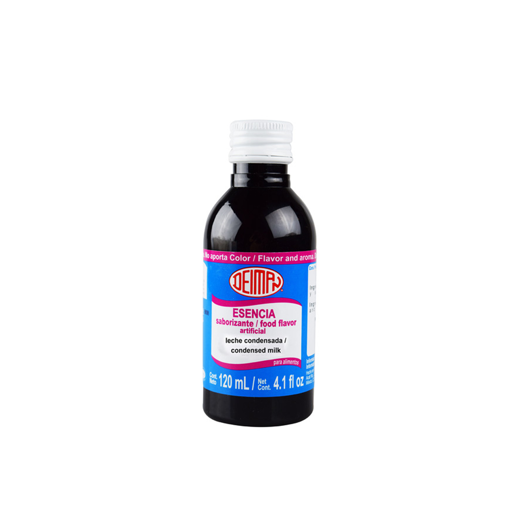Esencia liquida a base de alcohol sabor leche condensada, imparte sabor y aroma, no imparte color,perfecto para bebidas, frios, congelados, gelatinas, flanes y lacteos