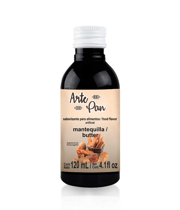 Concentrado liquido a base de aceite sabor Mantequilla, imparte sabor y aroma, no imparte color, resiste altas temperaturas, perfecto para reposteria y pan