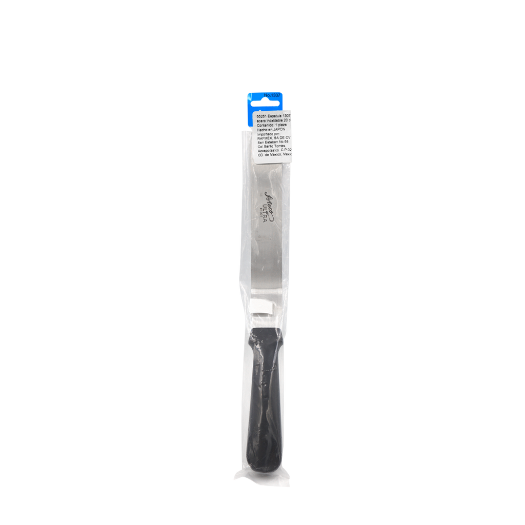 Espátula pastelera, con hoja de acero inoxidable, con mango en color negro, diseño ergonómico, ideal para todo uso, fácil de usar y limpiar.