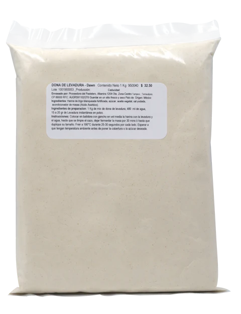 Mix de Harina Preparada, Marca DAWN, harina para Donas de levadura que serán freidas.