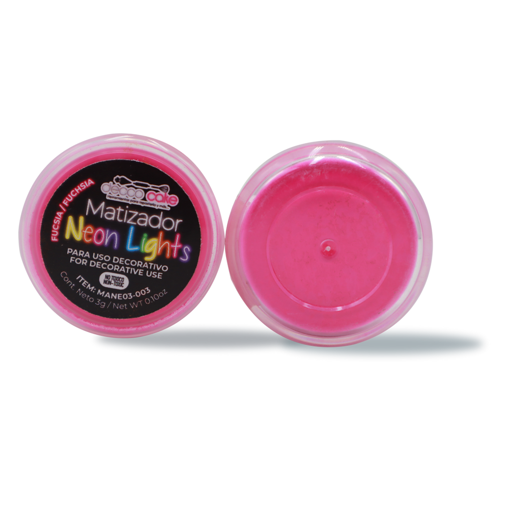 Los Neón Lights de Decco Cake son Matizadores en Polvo, es ideal para pintar figuras sobre Chocolate, Fondant, Pasta de Goma, Royal Icing, etc. Obteniendo un acabado neón brillante. Disponible en presentación de 3g en color Fucsia.