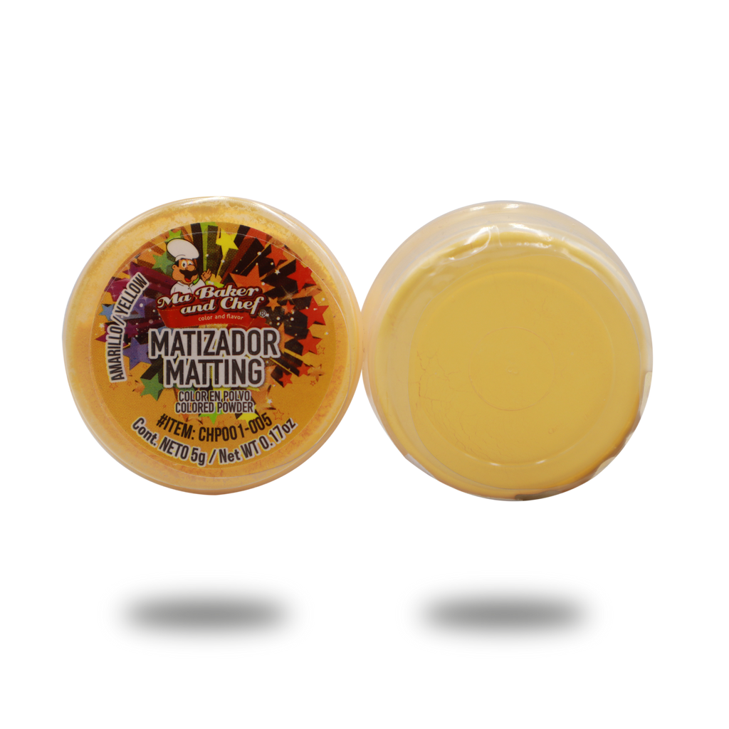 El Matizador en Polvo de Ma Baker and Chef lo podrá utilizar para matizar sobre Chocolate, Fondant, Pasta de Goma, Royal Icing, etc. Disponible en presentación de 5g en color Amarillo Mate.