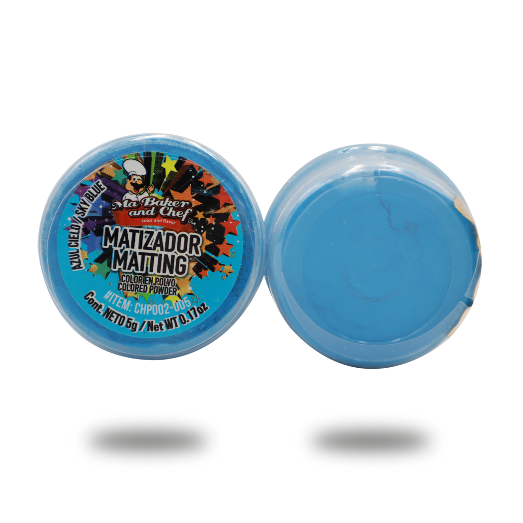 El Matizador en Polvo de Ma Baker and Chef lo podrá utilizar para matizar sobre Chocolate, Fondant, Pasta de Goma, Royal Icing, etc. Disponible en presentación de 5g en color Azul Cielo Mate.