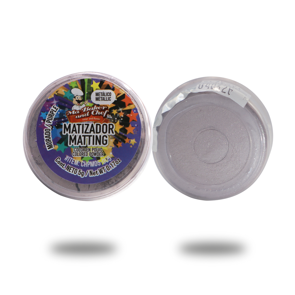 El Matizador en Polvo de Ma Baker and Chef lo podrá utilizar para matizar sobre Chocolate, Fondant, Pasta de Goma, Royal Icing, etc. Disponible en presentación de 5g en color Morado Metálico.