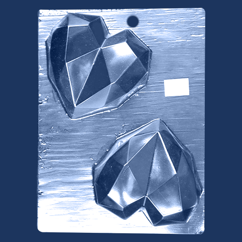 Moldes de Acetato especiales para Chocolate.Crea pequeñas Cajitas, Chocolates Sueltos, Paletas, Choco Bombas y mucho más con ayuda de esta herramienta.Diseño: Corazon de Diamante, 1 diseño, 2 cavidades.