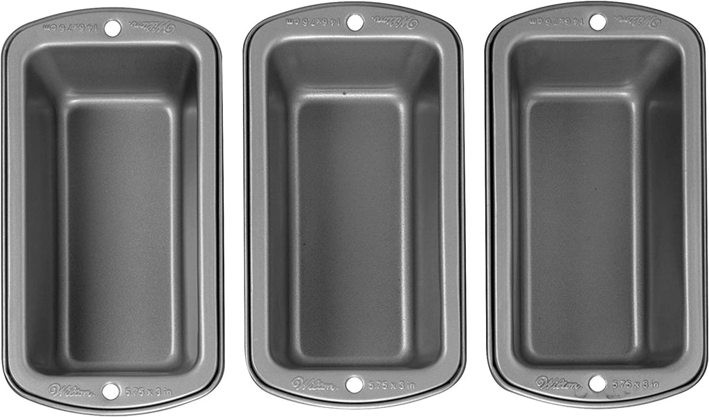 Excelente juego de tres mini moldes para panque te permite hornear más de uno a la vez.