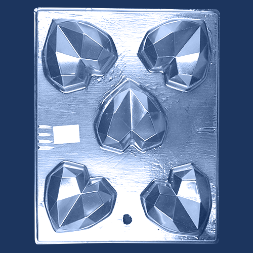 Moldes de Acetato especiales para Chocolate.Crea pequeñas Cajitas, Chocolates Sueltos, Paletas, Choco Bombas y mucho más con ayuda de esta herramienta.Diseño: Corazon de Diamante, 1 diseño, 5 cavidades.