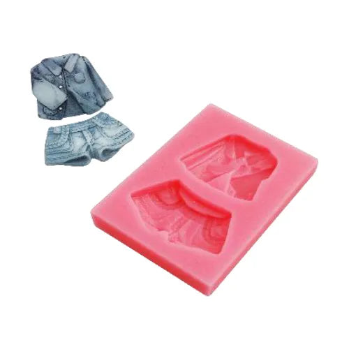 Molde de plastico con diseño de camisa y short, apto para masa de galletas, pasta de goma o fondant.