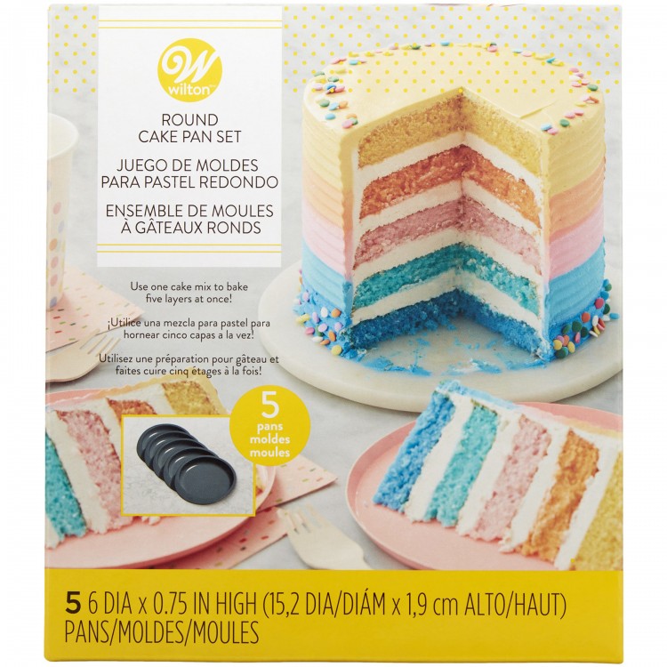Haga un pastel simple de 5 capas con este juego de moldes de 6 pulgadas y solo una mezcla para pastel. Con cada capa de 3/4 de pulgada, hornee un divertido pastel de arcoíris o un delicioso pastel de chocolate y vainilla con diferentes rellenos para separar las capas. Un kilo de masa es suficiente para llenar las cinco bandejas, y la mayoría de los hornos tienen espacio para acomodar las cinco bandejas para hornear a la vez.
