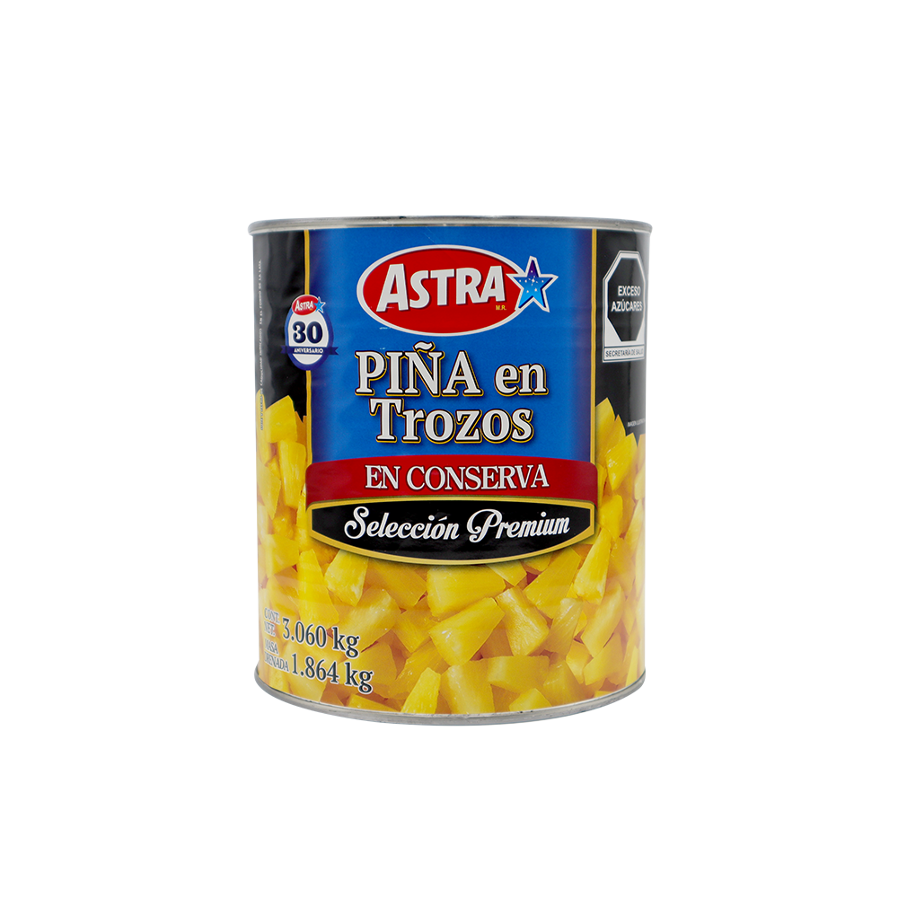 La tradicional Piña en Trozos en Almíbar será el aliado perfecto en tus postres, con su delicioso sabor que no puede faltar en tu mesa.