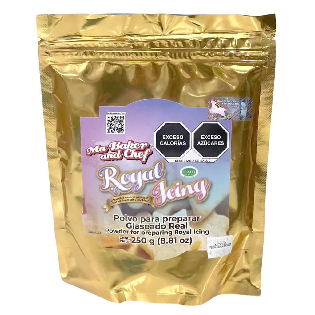 El Royal Icing de Ma Baker and Chef lo podrá utilizar para preparar el glaseado y decorar la tapa de sus bombones, galletas y pasteles. Disponible en presentación de 250g.