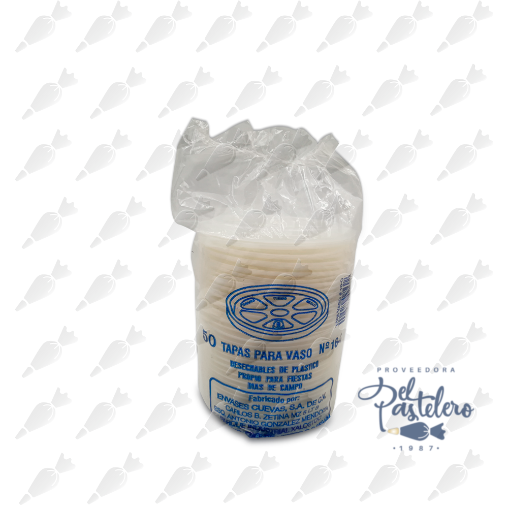 Tapa Plana - Plástico Blanco - Compatible con Vaso 14c y 16c1 paquete con 50 piezas cada uno.