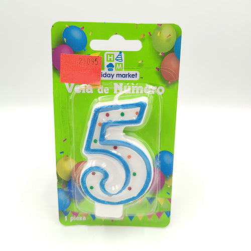 VELA NUMERICA CONFETTI AZUL NUMERO 5