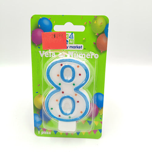 VELA NUMERICA CONFETTI AZUL NUMERO 8