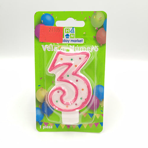 VELA NUMERICA CONFETTI ROSA NUMERO 3