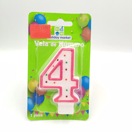VELA NUMERICA CONFETTI ROSA NUMERO 4
